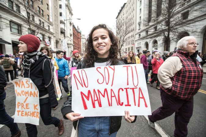 “I’m here to support women and everything against Trump. Our family is from Mexico, so his presidency really affects us all. Being a young Latina woman today, there’s a lot of emotions. With the presidency, you start to feel like the country’s against you – but then coming out to this march you see that many people are with us and for the community. And you start to feel like part of the U.S. again.” – Brenda Perez, 19.