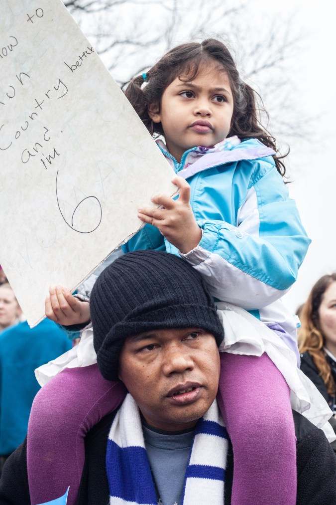 “I really wanted to get involved and I thought it would be a good way to show my support, and make sure the march is inclusive. A lot of people were worried about it just being white women, so I wanted to mix it up. I’m [also here] for immigration, because most of my family are immigrants. Also, Black Lives Matter. I’m mostly here for people of color.” – Valerie Voswinkel, 21.