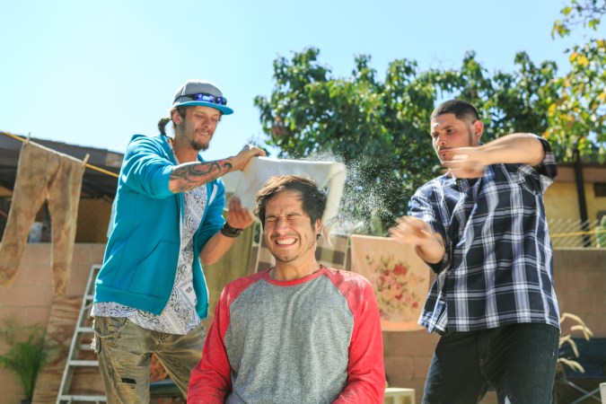 The concept of web series High & Mighty is right in its title. Without knowing why (mystery is key to this show), protagonist Chelo suddenly finds that getting drunk or stoned makes him mighty: it gives him super powers. The series’ playful humor is clear from the outset: while any other superhero origin story might introduce you to its hero’s powers with a training montage or a scene about choosing an outfit to fight crime in, this one finds Chelo and his friends raiding his East LA family home for stuff they can break on his head to test his strength. A wrench? Sure! Bricks? Go for it! Car windows? Awesome! A potted plant? Bring it, man!