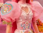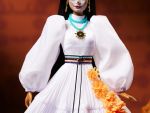 This year’s Día de Muertos collection was designed by Ari Sarinana. Barbie is wearing a multi-tiered gown with a cempasúchil flower motif and matching headpiece. Her face is also painted with the calavera, or skull, makeup that’s typical of the holiday.