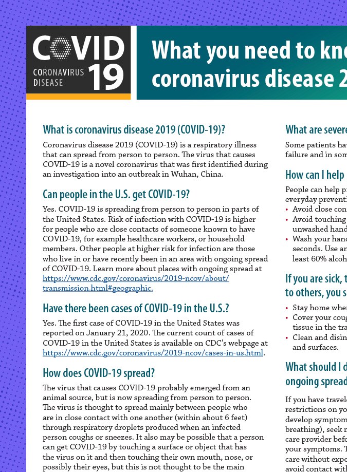 Below are a couple of the handy posters provided by the CDC to break down what we know about the virus thus far and how to do what’s in your power to prevent its spread. You can read more, in English and Spanish, here.