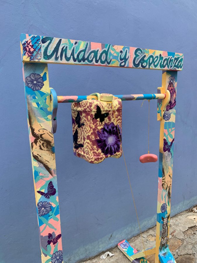 After recognizing the negative effects COVID-19 has had on human connection, Cosa Buena started working with local artists to decorate the hand washing stations, as well—creating a space for social expression and harnessing healing through art. Thus far, the organization has worked with artists such as Karel Muñúzuri, Bouler, Yescka, Adriana Monterrubio and Dario Cánul. In addition to contributing artwork, artists also offer messages of solidarity and hope.