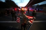 \Sheriffs block marchers from continuing down E. Palmdale Boulevard (State Route 138) after a demonstration on June 13, 2020 in Palmdale, California. The marchers were leaving a demonstration at a tree where authorities say Robert Fuller, a 24-year-old black man, was found dead, hanging from a tree, near Palmdale City Hall. Photo by David McNew/Getty Images
