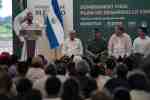 Mexico President Manuel Lopez Obrador and El Salvador President Nayib Bukele wave during a joint press conference launching the Planting Life initiative on June 20 in the Military Nursery of Tapachula in Chiapas, Mexico. Photo by Toya Sarno Jordan/Getty Images