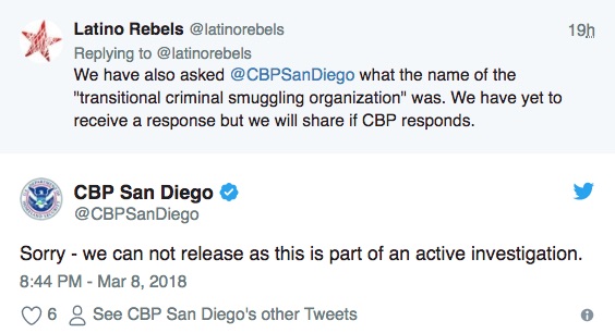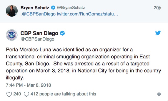 As the difficult-to-watch video spread online Thursday, CBP accused Morales-Luna of being the “organizer for a transnational criminal smuggling organization in East County, San Diego” in a tweet. An hour later, the Twitter account told Latino Rebels that it couldn’t release further information about the charges leveled at Perla.
