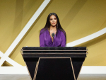 Vanessa Bryant speaks during The Celebration of Life for Kobe & Gianna Bryant at Staples Center on February 24, 2020 in Los Angeles, California. Photo by Kevork Djansezian/Getty Images