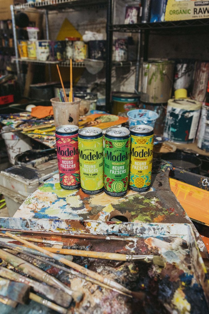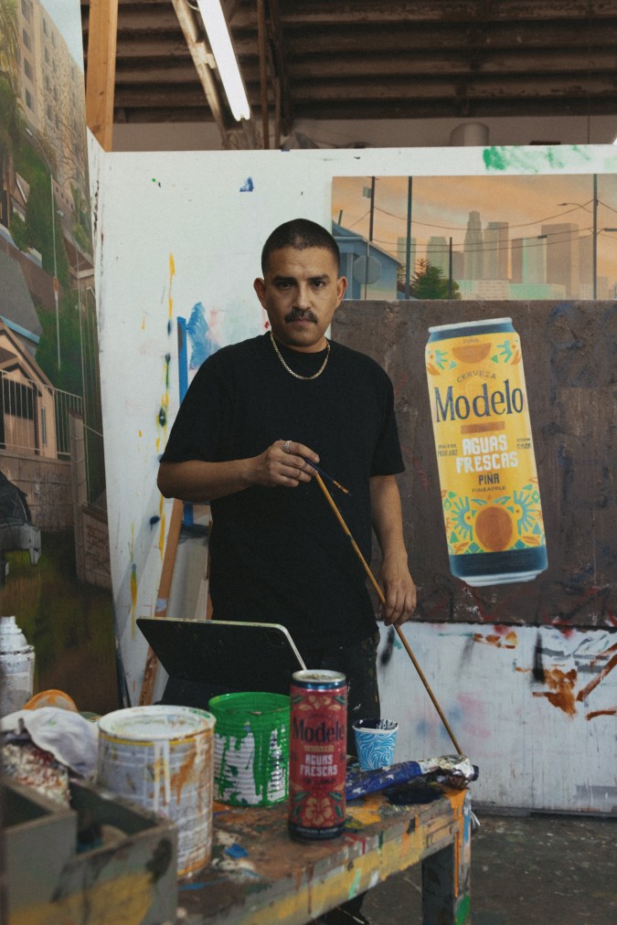 Embodying the richness of his heritage, Gonzalez Jr. partnered with Modelo to create an original art piece for their newest drink, Modelo Spiked Aguas Frescas. The immersive piece draws together components of Gonzalez Jr.’s dedication to Los Angeles (bordering neighboring city views) and Rotulismo Mexicano (with the brand’s unique design of its spiked take on the traditional aguas frescas).