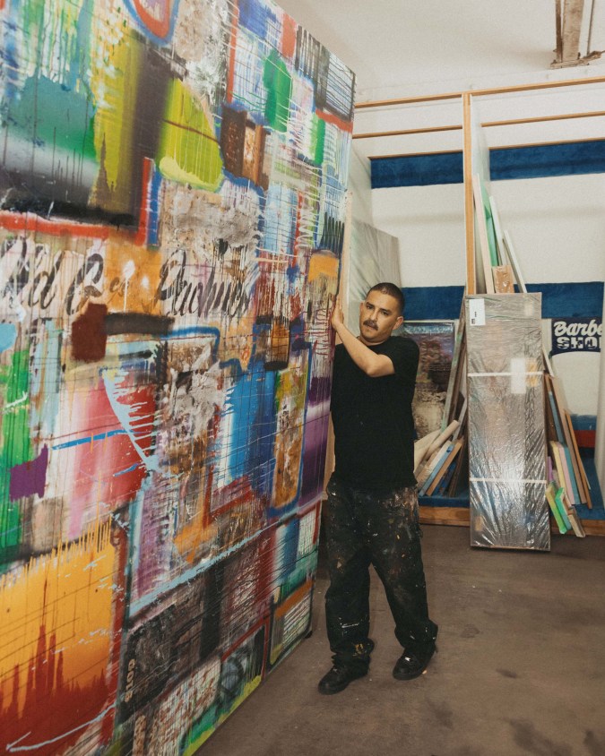 The budding artist is redefining the narrative of contemporary art. He echoes his family’s heritage of Mexican hand-painted signage, known as Rotulismo Mexicano, while infusing it with his unique perspective, creating a groundbreaking narrative within the art world.