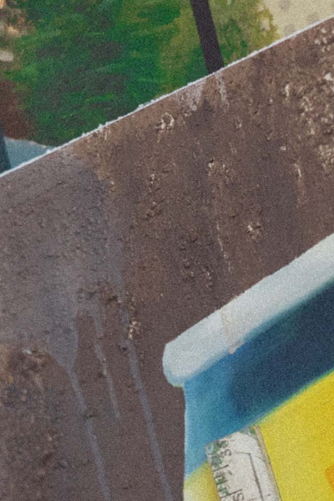 Aguas frescas are handcrafted like the rótulo signs that advertise them; the prioritization of being made by hand is a dedicated process that mirrors Gonzalez Jr.’s own. “I had fun with certain parts of the composition. I approached certain things about it in a way that was like experimenting,” he says. “A lot gets left up to chance with these layers. You could only control paint so much. Seeing that human touch is important to me. I wanted to capture the layers I’m exploring in my practice.”