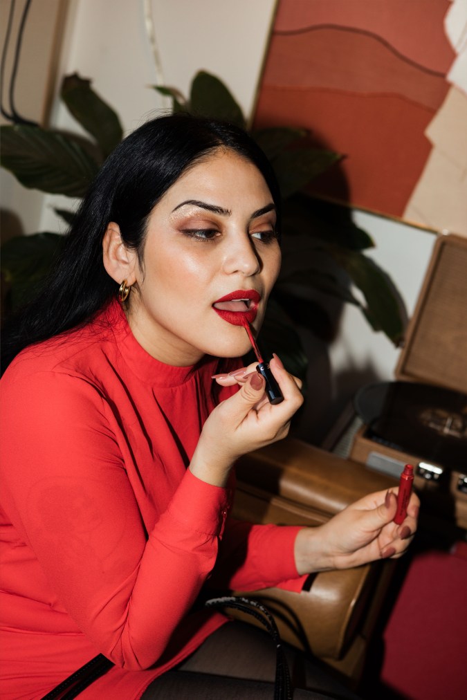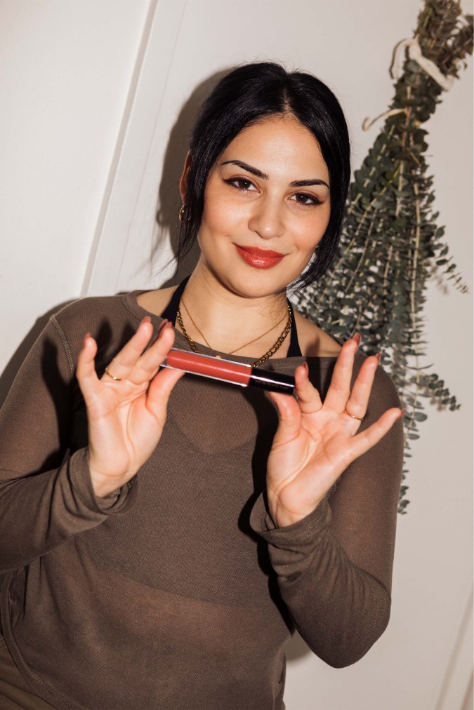 If she has to glam up for a concert or she interviews an artist backstage, Exposito has her go-to products perfect for the scene. When “it’s all about glamorizing,” she first reaches for Rare Beauty by Selena Gomez’s Always An Optimist 4-in-1 Prime & Set Mist. Then comes the lips: first, the HUDA BEAUTY Lip Contour 2.0 Automatic Matte Lip Pencil in red, and then the SEPHORA COLLECTION Cream Lip Stain Liquid Lipstick in electric red – a red that is “good on any complexion.” After that, just a little cat eye with the SEPHORA COLLECTION Waterproof 12HR Retractable Eyeliner Pencil, eyeshadow and that’s it. Glam complete!