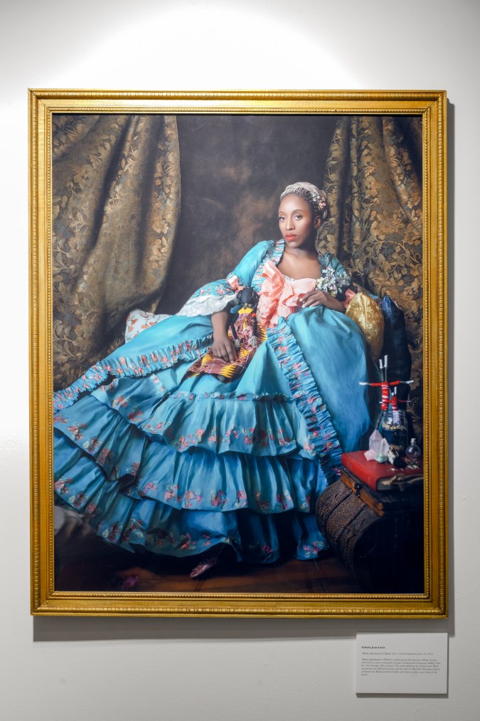 Creating space for the Black narrative also fuels Haitian-born interdisciplinary artist Fabiola Jean Louis, who rewrites history by reimagining Black women in past centuries as royalty in Europe and displaying them in glamorous paper gowns and wigs, as in her archival pigment print Marie-Antoinette is Dead.