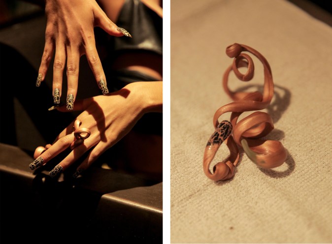 This time, Barragán collaborated with nail artists Eda Levenson of Lady Fancy Nails and Juan Alvear of Nails by Juan. The latter created some of his infamous freaky nails – often long and twisted – to match the spiraled mini skirts. Meanwhile, models strutted to the sounds of Mexican-American producer Debit.