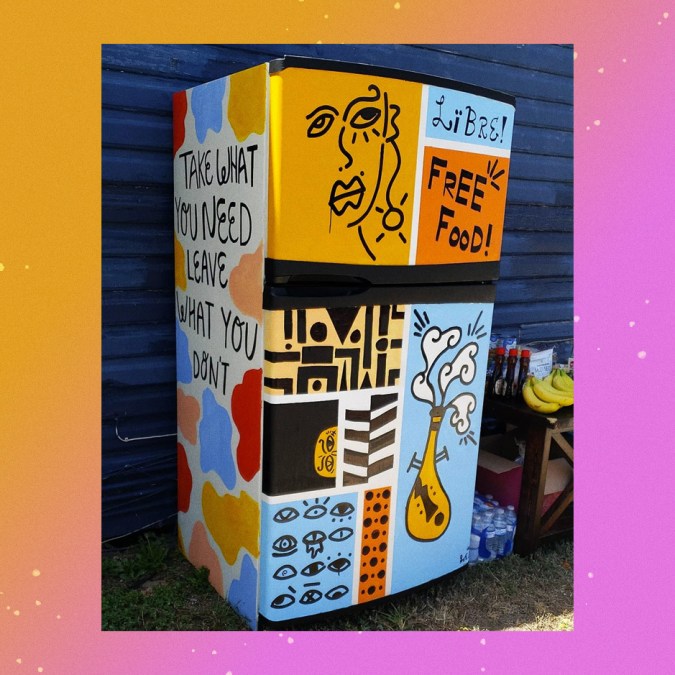 On the corner of 80th St. and Northern Blvd. in the Jackson Heights neighborhood of Queens, New York, sits an eye-catching refrigerator. Painted blue with larger-than-life drawings of fruits and vegetables, the vibrant display invites folks to take and drop “free food.” Inside, its shelves are stocked with fresh carrots, tomatoes, lettuce, cilantro, cassava, potatoes and ginger—all donated by local restaurants, supermarkets and everyday people hoping to feed their neighbors.