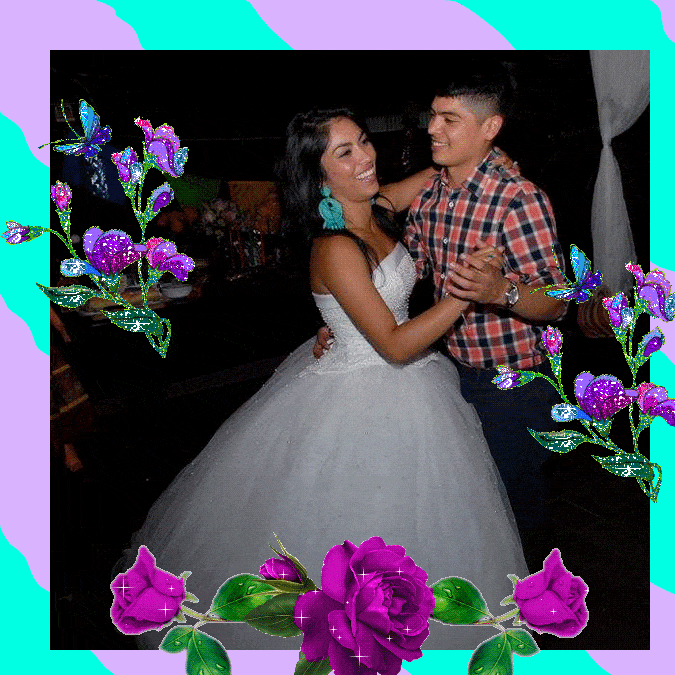 Before the party, she and her crew hit up a park to take the requisite quince photos. Posing in front of murals and on a merry-go-round, the 12 women looked more like a bride and her bridesmaids. But once they got to the venue, a dance hall, they probably felt more like teenagers. They danced to two songs, which Rosario describes as “beautiful and full of sisterhood.”