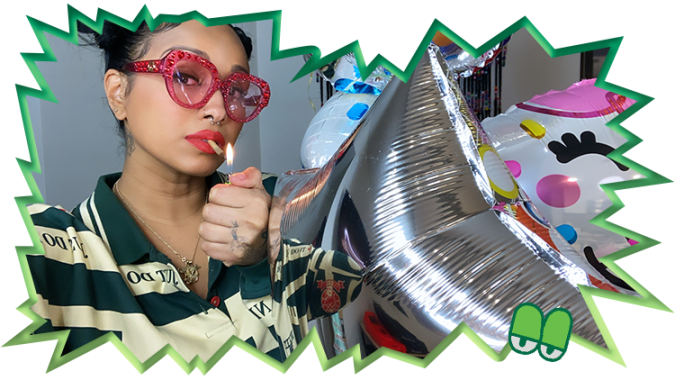 Well, funny you ask. Part of my getting some music making in a serious way this year had a lot to do with me moving to California and going six months straight, and really replacing all the… all the extracurriculars that I had in New York [laughs] that might be surrounded like surrounding alcohol, or hookah or whatever. I replaced them with weed and I always smoked weed, but now I really have been able to benefit from the varieties and like being able to figure out which weed is right for me, and really find the way of smoking and the, also the ease, you know, the lack of shame that California offered really helped me use it as a medicinal tool, as well as a stress reliever, as well as a party, you know, lifestyle drug. So yeah, weed is like my bestie, especially when it comes to having fun and healing—both equally.