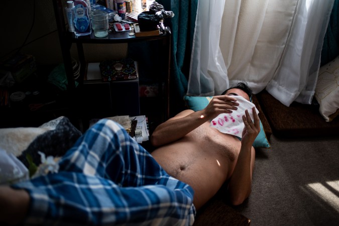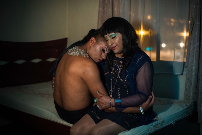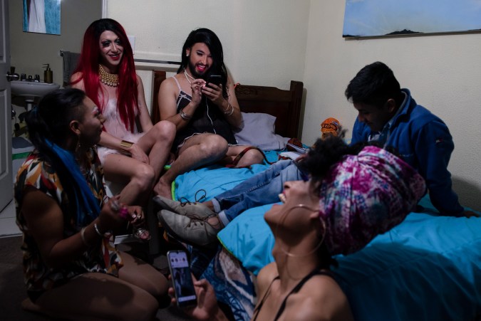 Gledys’ hair is short and messy as they walk around the house in dark blue sweatpants, a simple white T-shirt and brown sandals. We’re at their apartment for a pajama party with some of the other members of La Hermandad; while some are busy cooking a seco de chivo, others are applying make-up, taking selfies and scrolling on their phones.