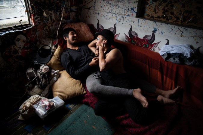 “Our strategy isn’t one of confrontation: the idea of ‘we are like this and society is gonna have to take it.’ We haven’t really overcome this fear of death, and maybe that makes us cowards, but it has kept us alive,” says Macías. “So instead we generate networks, cultivate friendships, use a lot of humor, and rely on support strategies like making sure we always arrive together at a party and also leave together.”