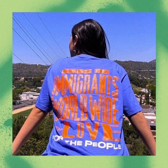 I’m professional from the shoulders up. I went to Target and bought myself a pack of Hanes boxer-briefs and a new, fresh pair of house shoes. I’ve been wearing different T-shirts, like cozy cotton T-shirts by this brand on Shop Latinx called Jen Zeano Designs. When I’m on these Zoom calls, I get to flaunt my brand. There’s this shirt that says “Morena.” It’s really cute. This other shirt says “Latina Power.” I like to support the brands in my marketplace, as well as myself. I do my hair with Rizos Curls, I put on my Hija De Tu Madre necklace, and I’m good to go.