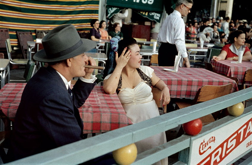Heidersberger, who shot almost exclusively on black and white film stock, learned of the position through a friend and took the opportunity to experiment with the new color slide film while soaking in the visual delights of la Perla del Caribe. The result is a series of handsome snapshots that admittedly lack the formal brilliance of Heidersberger’s architectural photography, but still manage to find interesting plays of color and light in everyday street scenes. It’s ostensibly the stuff of yet another nostalgic time capsule, but read through the lens of the brewing social discontent that would explode in outright revolution only four years later, the images take on the feeling of an ominous portent.