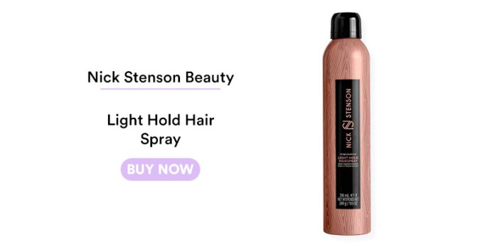 For the ultimate “telenovela hair,” Sanchez swears by two of the Nick Stenson Beauty line products. If you have fine hair, then you tend to deal with flatness at your roots and hairstyles not lasting hold without the proper hold. Well, Sanchez advises using “two of my favorite products from [the] Nick Stenson’s Beauty brand are the Nick Stenson Beauty Root Lifter Spray, this volumizing product builds body with a soft finish and Nick Stenson Beauty Light Hold Hair Spray” provides hold and protection from humidity, a necessity for everyday styling.