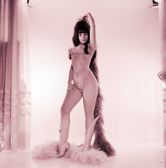 The favorable perception of showgirls began to wane in the late ‘70s. As the era of VHS movies commenced, new genres, including Mexico’s erotic comedies, known as cine de ficheras, were born. The low-budget films co-opted showgirl culture but elevated the vedettes’ salaciousness over their talent. The industry hired voluptuous models to play the roles of sexually explicit showgirls in their films.
