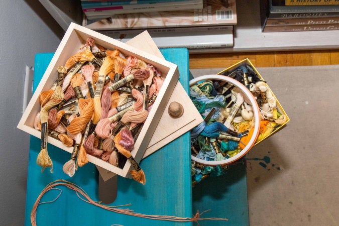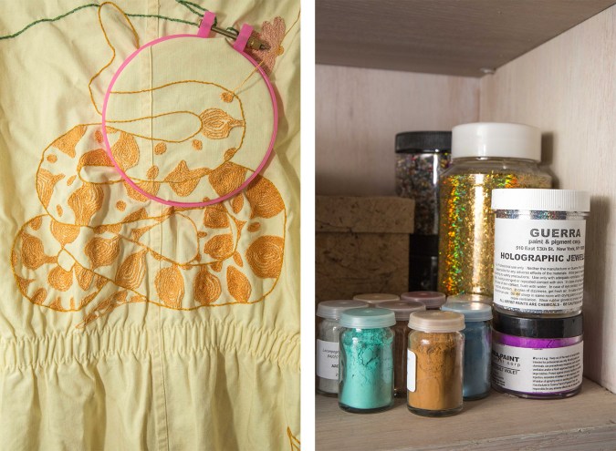 Last year, as she prepared to show in Santiago de Chile, she sought to create something that could easily travel from one country to the other. So she began experimenting with printing her drawings onto fabric and tapestries, which she then embroidered. It’s something she hopes to do more of in the future.