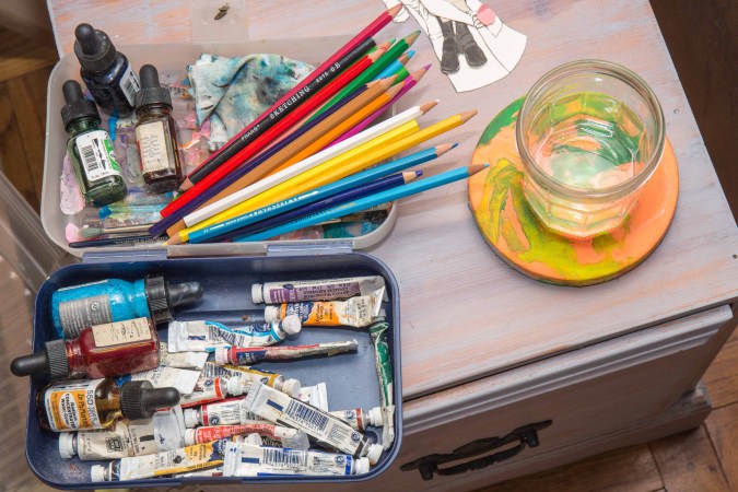 Currently, she’s trying to learn just how versatile the field is, but she continues to come back to printmaking and layering. “I just really like when things look like it’s mixed media,” she says.