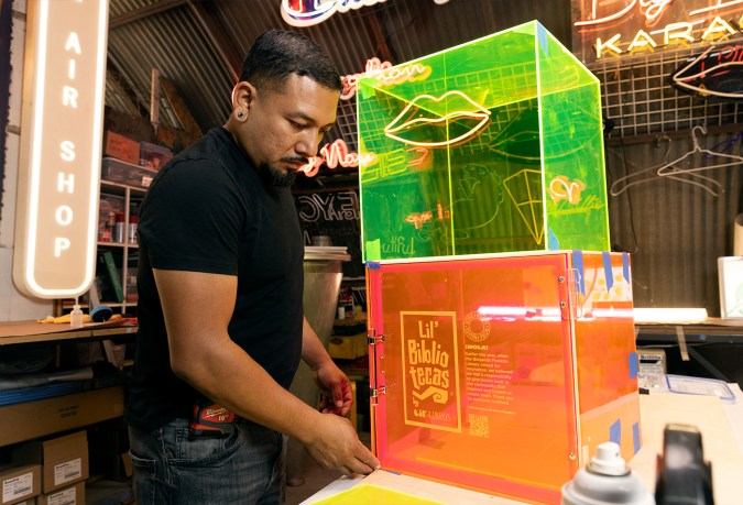 The Latine culture explored and embraced through Lil’ Libros will be the main inspiration behind each of the five Lil’ Bibliotecas. The overall design for each will be inspired by a Lil’ Libros classics, including, “Loteria: First Words / Primera Palabras,” “Lucha Libre: Anatomy / Anatomía,” “Counting With / Contando con Frida,” “The Life of / La vida de Pelé” and “Singing / Cantando De Colores.” It’s a community effort between artists, fabricators and local families to ensure that Boyle Heights regains its access to books.
