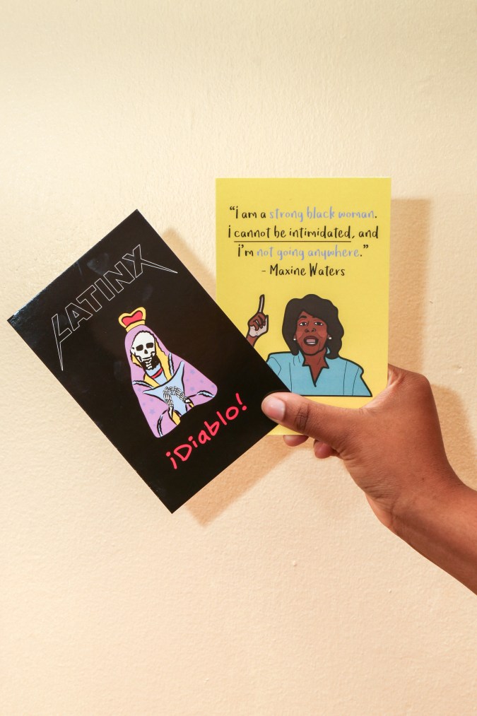 She hasn’t abandoned her writing career, but art provides her an outlet for those frustrating feelings. With GRL TRBL (pronounced girl trouble), Pellot celebrates women of color through her powerful, colorful images. And it’s exactly what we need, a year into Trump’s tenure. In an election that found that WOC, particularly black women, voted against Trump, it’s especially important to center these voices and experiences. As an Afro Latinx of Dominican and Puerto Rican descent, her art, which she describes as “kitschy,” is all about uplifting women of color. Using politics and pop culture as a reference – Congresswoman Maxine Waters, The Craft, and Beyoncé – she spreads feminist messages.