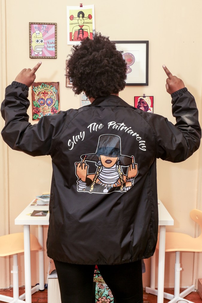 “I’m just one woman,” she says. “I don’t represent all women, but I do think [it’s necessary] for us to speak up loudly as much as we possibly can. I have an homage to Maxine waters and Beyoncé, to women of color who I feel are important and powerful. Most women of color don’t have enough people saying, ‘Look, she’s cool. You should know about her.’ I know that as someone who is Afro Latinx, I don’t see myself represented anywhere ever.”