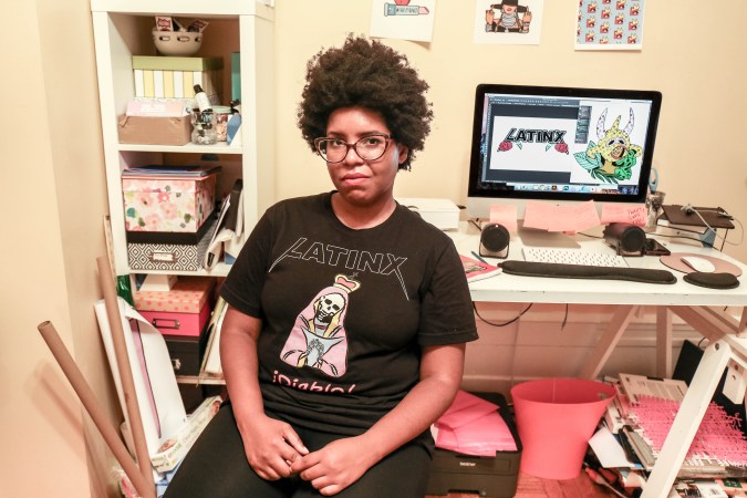 Her next step is to draw more inspiration from her experiences as a Latina – something she’s already started. She recently teamed up with fellow artist Krystal Quiles to design two pins: a Vejigante mask, which mixes African and Taíno cultures traditions and was created to benefit the people of Puerto Rico in the aftermath of Hurricane Maria; and a Latinx pin. But she hopes her next designs to be more representative of herself as an Afro Latina from New York.