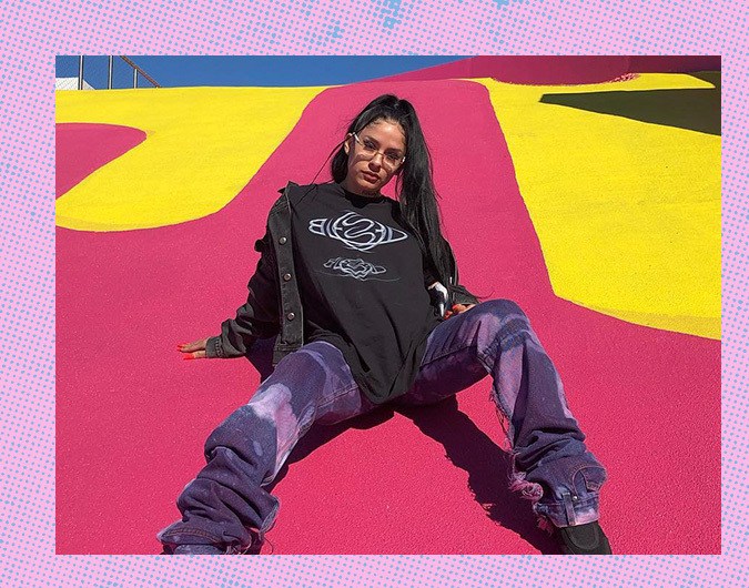 [A] design that is jelly yellow, has Sad Girl, and [anime] painted by hand. Those remind me of my culture because they remind me of a lowrider. I’m very inspired by Chicano culture and lowriders because I grew up in LA, and when I was little, my dad used to paint lowriders and would take us to the car shows to sell hotdogs.