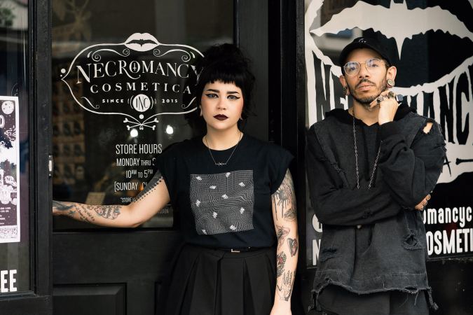 Before you even step inside Necromancy Cosmetica, you get a feel for the company’s preference for the occult. With its black storefront, the brick and mortar stands out among the empty storefronts on Calle de Diego in Rio Piedras, Puerto Rico. Inside, this small boricua lipstick company – which tends to favor dark tones – is making a splash in the cosmetics world by tapping into the world of goth.