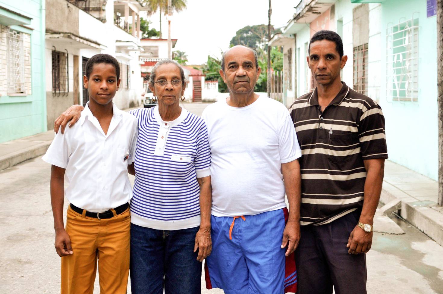 This image was taken in the Villa Clara province in the capital city of Santa Clara. Yorky is accompanied by his father, his mother, and his son named Luis. They have lived in Santa Clara for almost thirty years. He is currently an electrician, his father is a retired mechanic, his mother works from home, and his son, Luis, is in his last year of high school.