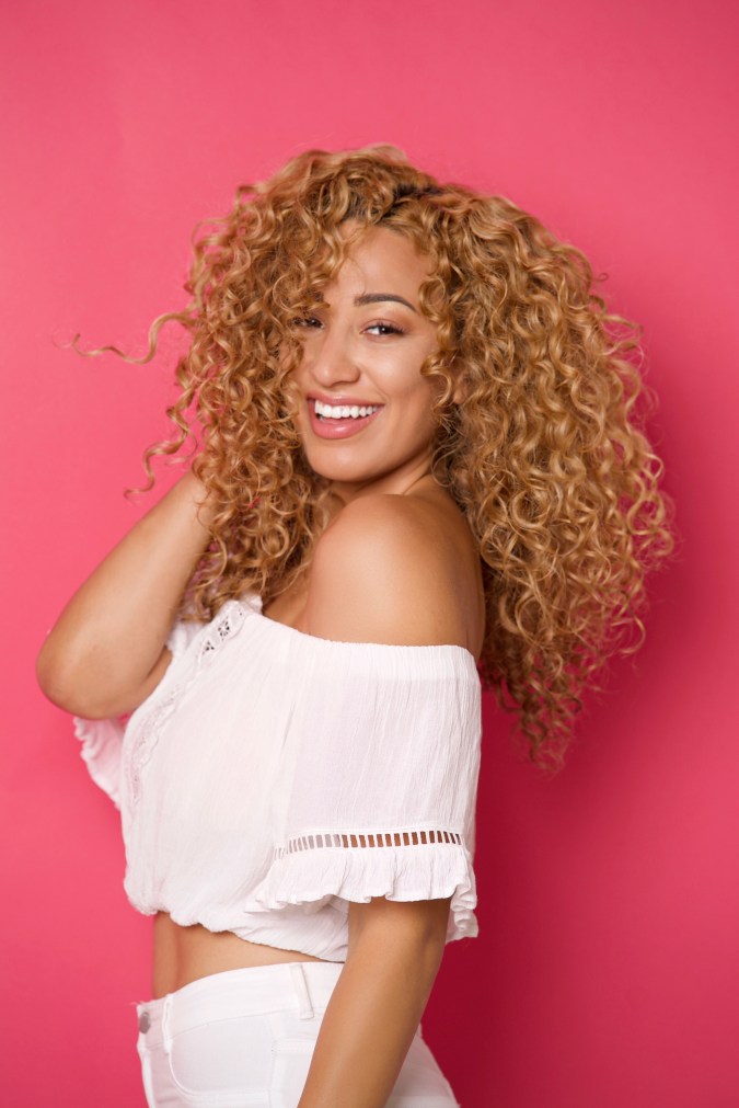 I grew up in very predominantly Latino communities and neighborhoods [in Los Angeles]. I have a huge family, and when we were very young we all lived in one apartment building. Almost every unit was a different family member, so that can give you an idea of the culture and the environment that I grew up in. Growing up, I always saw how so much of my community had textured hair – they had wavy, curly, coily hair, a variety of textures. But they went to great lengths to straighten it, and not embrace it. There was a lot of self-hate around their hair. There was always this notion of ‘your hair is not done until it’s not curly.’