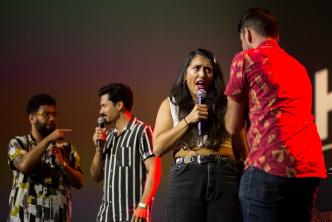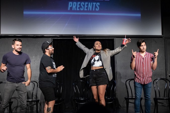 “Tapatío.” “Spicy.” “Tacos.” Whenever Raiza Licea – who is of Cuban descent – asked the crowd for one-word suggestions during her improv shows in Los Angeles, they shouted stereotypical terms. It was a frustrating moment like this that eventually inspired her to start Spanish Aqui Presents (SAP), Upright Citizens Brigade’s (UCB) first Latinx-only improv team – now also in podcast form. Alongside Oscar Montoya, Carlos Santos and Tony Rodriguez, the quartet is redefining what it means to be a Latinx comedian on stage.