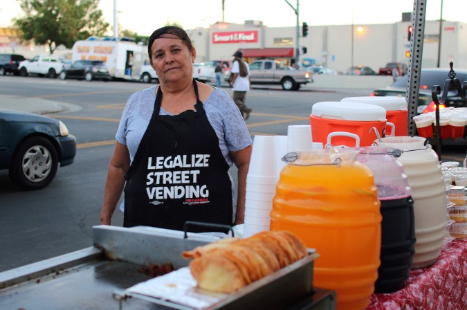 “I’ve had my stand confiscated five times. Twice here and three times on Cesar Chavez,” says Caridad Vasquez, a street vendor in her 60s originally from Colima, Mexico. She’s sold her pozole, quesadillas, and tacos for nine years on a Boyle Heights street corner.