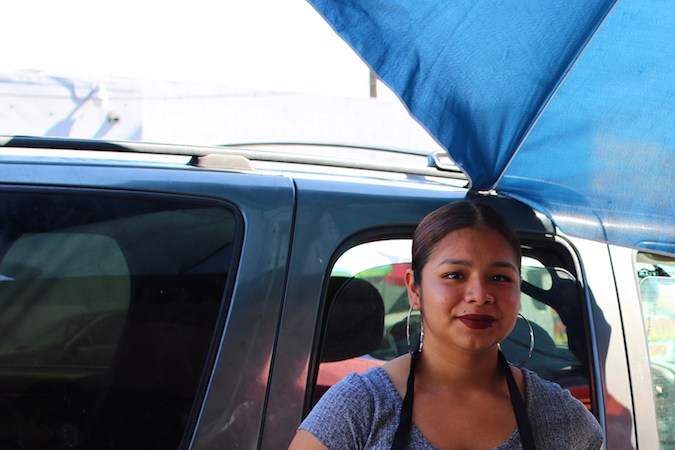 Back in Boyle Heights, Vasquez’s daughter Esmeralda, sprinkles cheese onto a handmade tortilla and she explains that at one point they bought a taco truck to avoid the constant harassment. But their customers didn’t like it. “They would tell us to get out of the truck, they wanted to talk to us face to face…a lot of our customers are immigrants that come here alone to work. We provide human interaction on the sidewalk.”