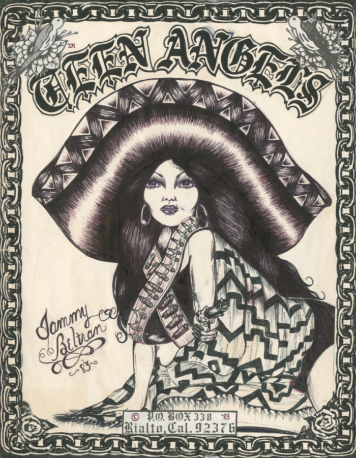 Hand-drawn portraits of cholos with their lowriders and homegirls, guides to perfecting pachuca hairstyles, and poems describing the whole-hearted dedication needed for “Loving A Convict” were staples of Teen Angels, a zine that chronicled the culture of Southern California’s Chicano neighborhoods. Started in 1981, Teen Angels magazine was known as the “voice of the Varrio”, the only publication at the time that featured the artwork, poems, dedications, photographs, and essays of Chicanos, particularly those who were gang-affiliated or in prison. Until the mid-2000s, when production of Teen Angels ceased, the magazine maintained a loyal, underground following among Chicanos who could finally see themselves reflected in print.