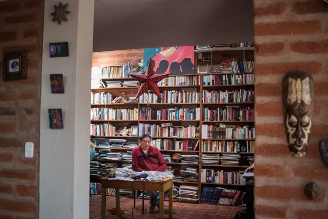 “Here we’ve had to build everything ourselves,” Floresmilo Simbaña, Gerardo’s younger brother, says. A prominent figure in Ecuador’s national Indigenous movement, Floresmilo is the kind of intellectual with volumes of books on Lenin and Marx stored in a dramatically large library with few decorations but a dark red canvas of Dolores Cacuango, a communist activist who fought for Indigenous land rights and autonomous education in Ecuador’s 20th century.