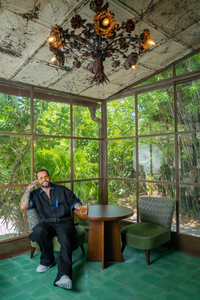 Amidst the unrelenting humidity of Miami, the camera’s shutter clicked its final acknowledgment of our photo shoot with director Ángel Manuel Soto. We’re now seeking air-conditioned refuge under a greenhouse-inspired structure, verdant plants embracing us from every corner. Giant antique-framed windows punctuate the space, and at this moment, I’m struck by an evocative déjà vu. It’s as if the echoes of the Kord Estate, a setting in the Blue Beetle film, sit in the same ambiance that bears the marks of both antique and imagination. There’s a sense of harmony between the old and the new, a concept that Soto embraced wholeheartedly as he translated a character’s storied history onto the big screen nearly a century after its inception.