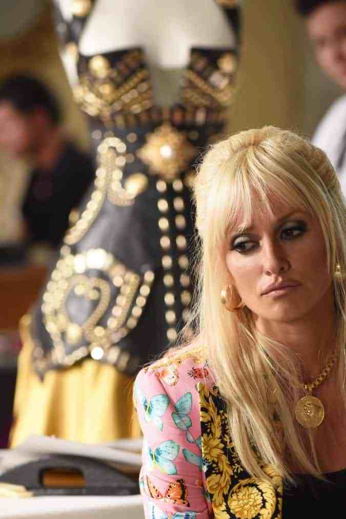 Better yet, they truly help inform character. Donatella’s jacket, after all, is both warm yet imposing. It’s a working woman’s blazer that dares you to call it tacky (that pink! those butterflies! the gold pattern!) It’s ostentatious while also being understated, the kind of piece you can see her picking out of her closet almost absent-mindedly. But with those sleeves rolled up and those big, gold pieces of jewelry adorning her, we get to see Cruz-as-Donatella as the kind of no-nonsense style icon she’s always been, always having business in mind even while styling herself as she were about to be in a lavish editorial spread about female executives shattering glass ceilings.
