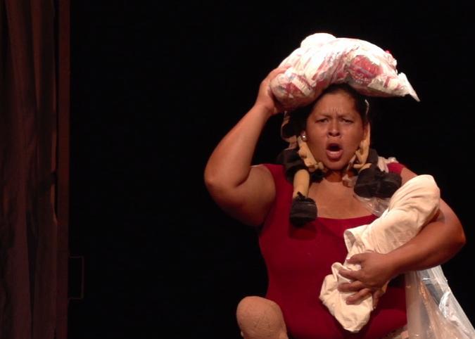 In between busy shifts as moms and street sellers, Evelyn Chileno, Magdalena Henríquez, Wendy Henríquez, Magaly Lemus and Ruth H. Vega join their teacher, Egly Larreynaga, in a nondescript room. It looks like the spare activity room of a church, but with the chairs, stray boxes and tables pushed out of the way, leaving behind a blank space – their space – in the room with white walls. The women have formed a theater company, La Cachada Teatro, and it’s in these kinds of nondescript spaces where they first began to do basic acting exercises and stretch creative muscles they may have never known they had.