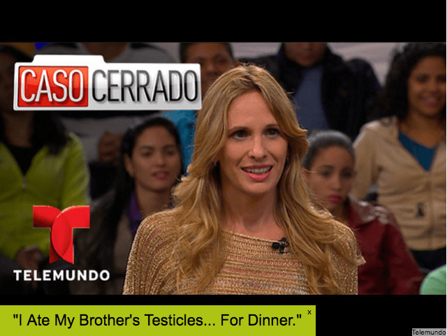 But while older audiences of the show may be more credulous watchers, a younger generation comes to the show with a fair dose of skepticism about the outrageous cases presented. The scenarios Dr. Ana Maria Polo presides over have become increasingly bizarre over the years – so much so, that Mitú once playfully created a quiz titled “Can You Guess Whether These Ridiculous Caso Cerrado Episodes Are Real or Not?” that is surprisingly tough to ace. Did you think “I Ate My Brother’s Testicles…For Dinner” couldn’t possibly be a real episode? Or that “Smelling Used Condoms Helps Reduce My Craving for Cigarettes” is a subject that seems to have no place in a court of law? Think again – both have aired on Caso Cerrado.