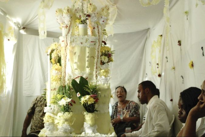 I refused to actually go to a real rezo and shoot. It didn’t feel right. I’d [be] using the suffering of the relative of someone who died to benefit my film. And I said, “No, I have to bring these people, we have to recreate this, and they have to get paid.” But it has to be staged by them, and it has to be organized by them. So the altar, it’s made by them, and I’m just following. None of the protagonists are professional actors. For example, Patria, Yuberbi, the big sister who has the fight in the river, she’s not an actor at all. She’s someone from the community. So yeah, I think the challenge was to make the professional actors be part of this, and have them not feel like actors — and for that, I worked a lot.