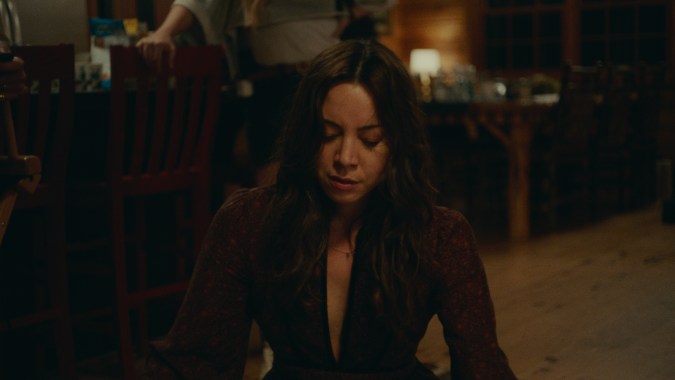 Perturbed (or perhaps in knowing anticipation), Allison (Aubrey Plaza) stares out into the uncanny void of a foggy lake in the opening shots of writer-director Lawrence Michael Levine’s cerebral, multi-angle drama, Black Bear. She could, however, just as likely be pointing her piercing gaze directly at us, burning through the protection of the screen to bridge reality with the meta realm where the story unfolds.