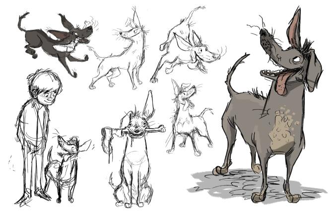 Unlike today’s modern dogs, animated or living, Dante the Xolo was a challenge for the animators, who enlisted some clever techniques to include all the elements that make the breed unique. Using drawings and clay sculptures the animators were able to “get [Dante’s] proportions…relative to Miguel,” Hoffman says. Size is easy, but how does one convey the Xolo’s namesake hairlessness, the result of centuries of evolution? For Hoffman, “hairless doesn’t necessarily mean hairless.” The animation team centered most of Dante’s hair around his head and ears, making it “scraggly and scruffy, and a little gross.” Leaving the rest of him hairless, the team was able to play up Dante’s skin texture and wrinkles, and showcase the way his skin moves over his body.