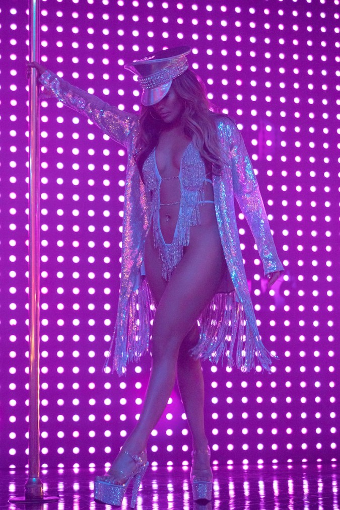 Given that Ramona is the J.Lo of strippers in the film, with her wardrobe very much looking like it was ripped from the actress’s own closet circa 2008, it’s no surprise to see her come out in what’s ostensibly the green Versace Grammy dress of stripping outfits. “I was actually pretty nervous to get up on stage in front of 300 men while wearing that,” Lopez shared. “It was the smallest g-string in the world — I call it dental floss! When I’m on stage at my concert, you know I have like three layers of tights and what not to help support me, but this was just me and the dental floss. But I had to go for it, I had to own it, like Ramona would. I think as women, we often have a choice with our sexuality: are we scared of it or do we use it? Ramona uses it fearlessly, and I hope you can see that in the opening scene with her. Her outfit, her attitude — she owned the stage and in that moment, she owned those men. And she knows it.”