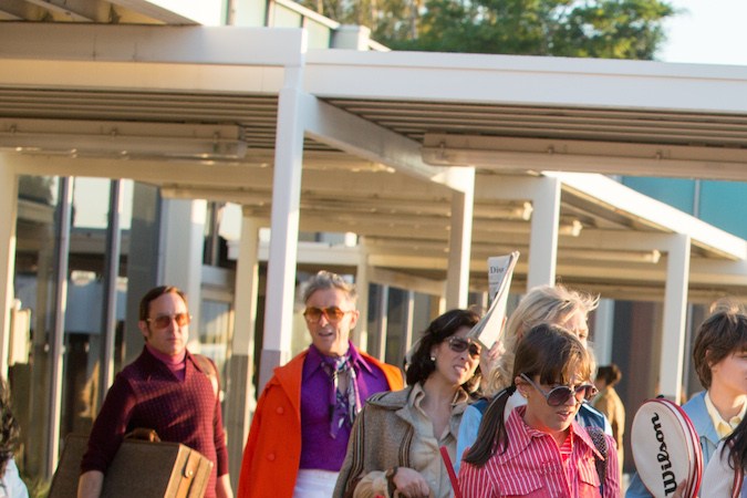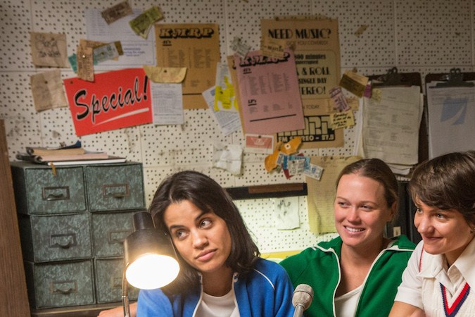 Natalie Morales (The Grinder) plays one of those tennis players, lone Latina athlete Rosie Casals, a multiple Grand Slam champion who was ranked No. 3 in the world in 1970. During the 1973 match between King and Riggs, Casals was given the opportunity to do the live TV commentary alongside late sports announcer Howard Cosell. With a little movie magic in Battle of the Sexes, Casals’ image is replaced with Morales’ in the original footage so it looks as if Morales herself is interacting with Cosell during the match (think of the scenes in Forrest Gump when Forrest meets John F. Kennedy and John Lennon).