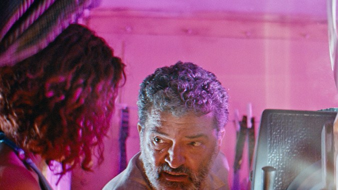 Cabral didn’t want Eliseo’s “Guagua del Cine,” as the bus he uses to screen movies is called, to serve as just a prop. His goal was to repurpose a truck that could actually house a functional projector. The production found parts from multiple projectors that movie theaters had discarded and built a Frankenstein device from them. Then they cut a hole in the side of their bus. All the scenes where Eliseo is projecting a movie for an audience are actually being projected live. “Extras were able to watch a movie while I rehearsed with the principal cast,” he added.